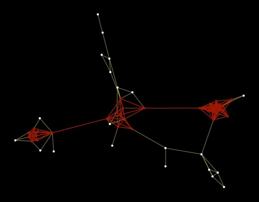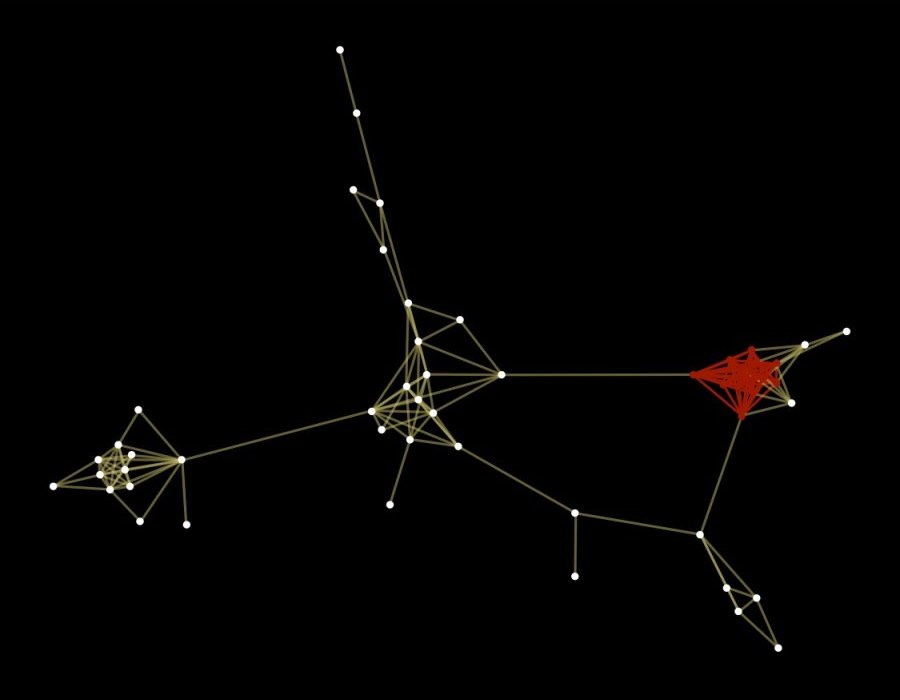 Un composant cœur K est un sous-graphe minimalement connecté dans lequel tous les sommets ont au moins un degré K. Ces composants correspondent à des groupes d’acteurs dans les réseaux sociaux.