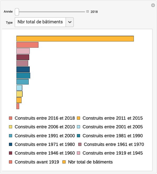 Bâtiments d’habitation en Suisse selon l’année, la période de construction et le type. Présentation graphique.