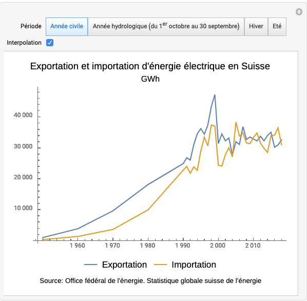 Exportation et importation d’énergie électrique en Suisse