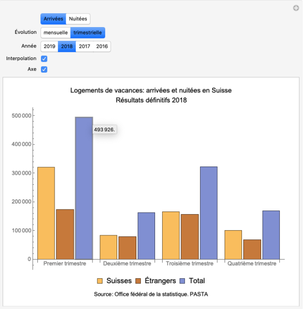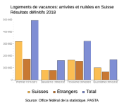 Remarques méthodologiques : Après sa suspension en 2003, la statistique des logements de vacances et des hébergements collectifs a été réintroduite en 2016. Pour sa bonne mise en œuvre, la statistique naissante a nécessité une nouvelle méthodologie répondant aux standards actuels visant à optimiser la qualité des résultats et à réduire la charge des répondants. Par conséquent, les résultats entre la nouvelle statistique et l’ancienne ne sont pas directement comparables.