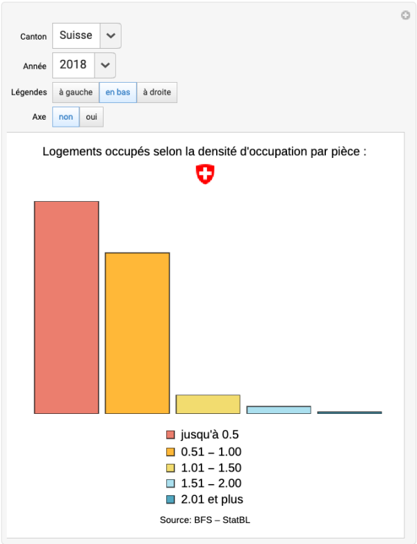 Logements occupés selon la densité d’occupation par pièce, par canton