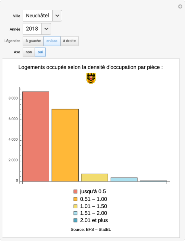 Logements occupés selon la densité d’occupation par pièce, par Ville. Période d’observation 2012-2018.