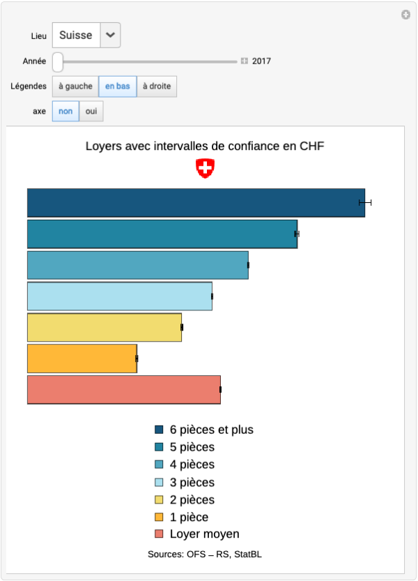 Loyer moyen en CHF selon le nombre de pièces, par canton.