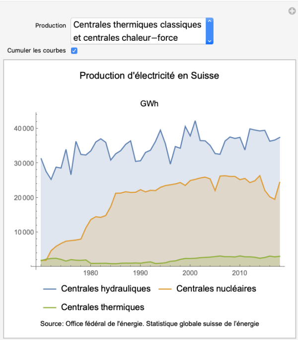 Production d’électricité en Suisse. Données de l’Office fédéral de l’énergie. Statistique globale suisse de l’énergie