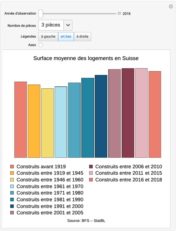 Surface moyenne des logements selon l’époque de construction et le nombre de pièces.